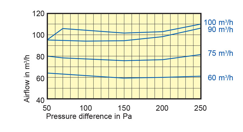 The constant volume regulator is an element placed inside the duct in order to obtain a constant flow within a pressure range from 50 to 250 Pascals.
