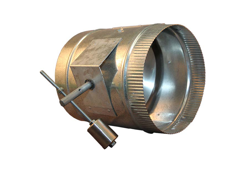 A Round Barometric Damper is used to automatically bypass excess air when increases in duct static pressure occur due to closing of zone dampers. Various relief air control settings are easily accomplished by simple adjustment of an integral weighted control lever.
